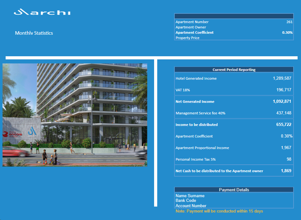אחד היתרונות הבולטים של ההשקעה בפרויקט זה הוא ההבטחה לתשואה קבועה, ללא תלות בתפוסת החדרים.
